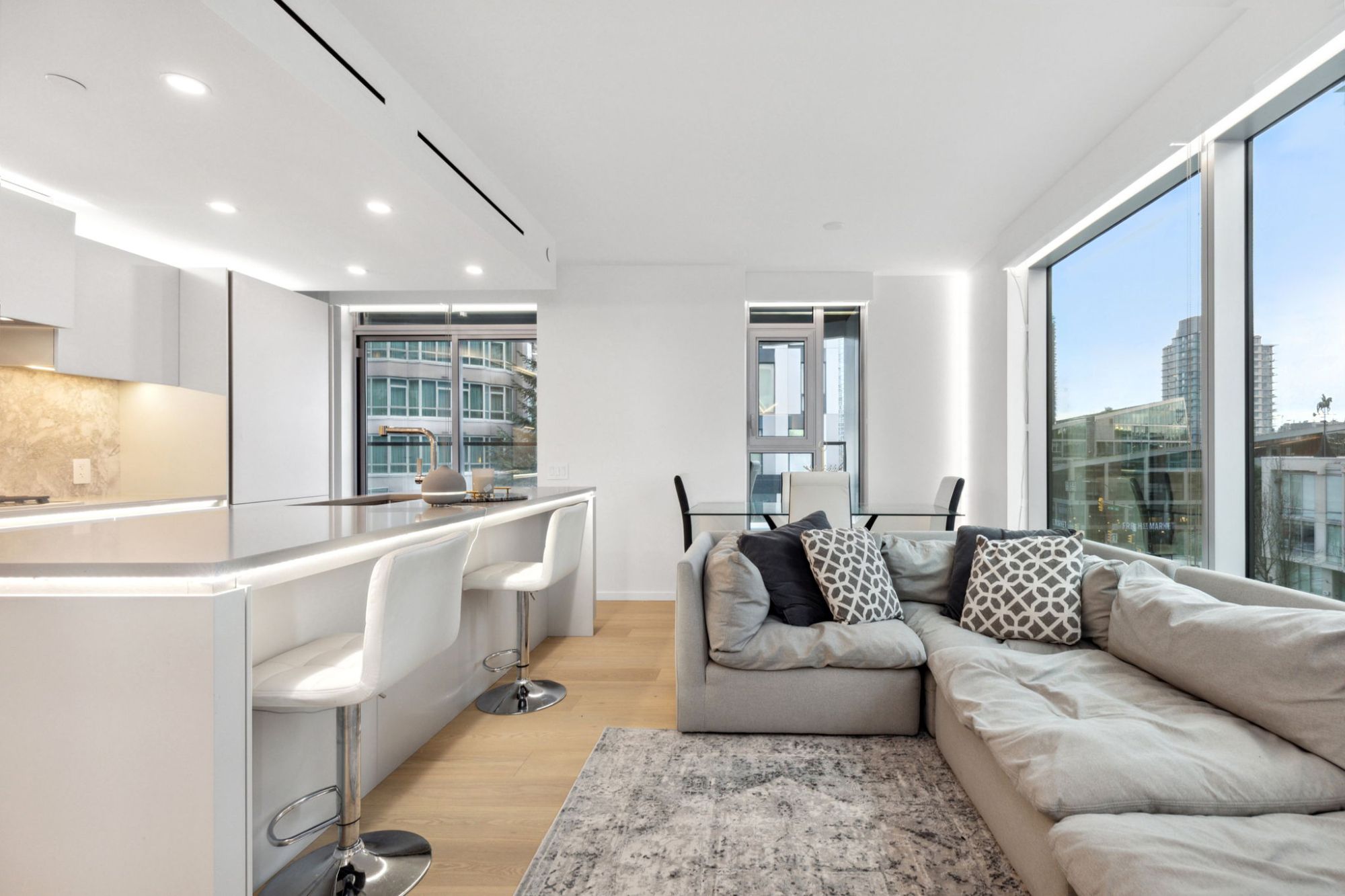 The Pacific by Grosvenor embodies the pinnacle of luxury living in Vancouver, offering residents an exquisite blend of sophistication and convenience. This distinguished property features a spacious home with a functional floor plan, including 2 bedrooms, 2 full bathrooms, and an open-concept living space, all adorned with premium materials like hardwood oak flooring and Snaidero Italian cabinets. The chef's inspired kitchen, equipped with high-end appliances from Wolf, SubZero, and Miele, caters to culinary enthusiasts, while the efficient heating and air conditioning system ensures year-round comfort. Exclusive amenities, such as a 24-hour concierge, an elegant lounge, and a beautifully landscaped terrace, elevate the living experience. The addition of a high-end fitness center on the same floor offers unparalleled convenience for health and wellness enthusiasts.